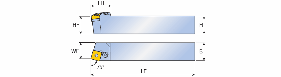 Lever type holders with 75° approach angle for negative Square inserts and new reinforced Shim