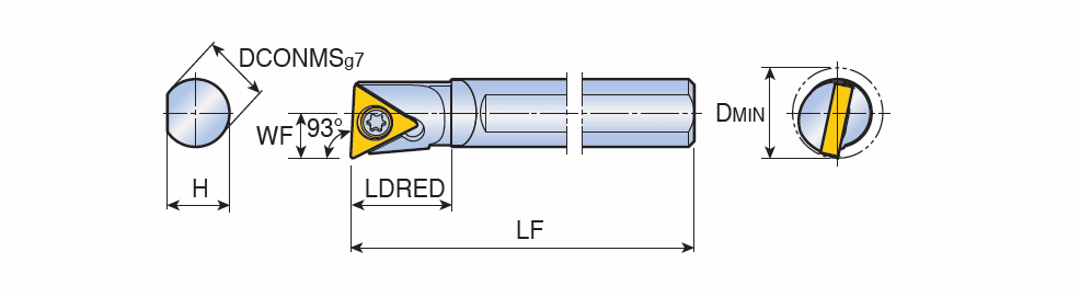 TOPMINI screw type boring bar for positive Triangular inserts of 5° clearance angle & small components machining with 93° approach angle