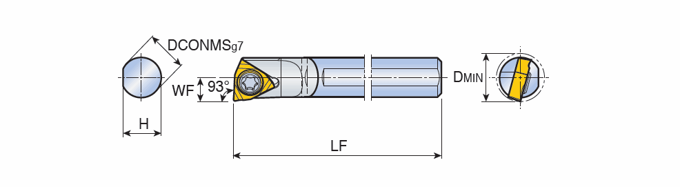 TOPMINI screw type & carbide shank boring bar with positive 80° Trigon inserts & 93° approach angle for small components machining