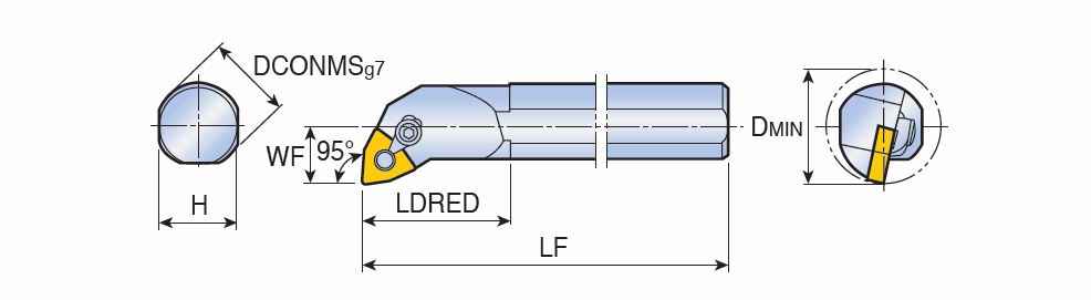 Multi lock boring bars with 95° approach angle for negative 80° Trigon inserts