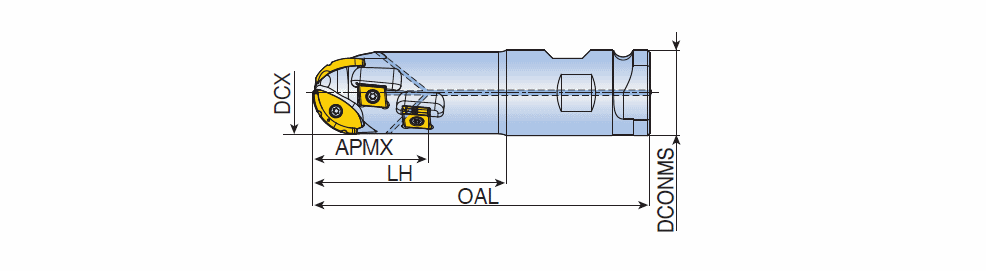 Three effective ball nose end mills with combination shank & unique double-sided inserts of 3FB for high productivity in diameter of 50 mm