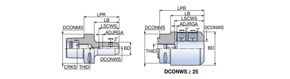 Whistle notch DIN 6359 / DIN 1835 form E end mill holders with C-ADAPTER (ISO 26623-1) taper shanks