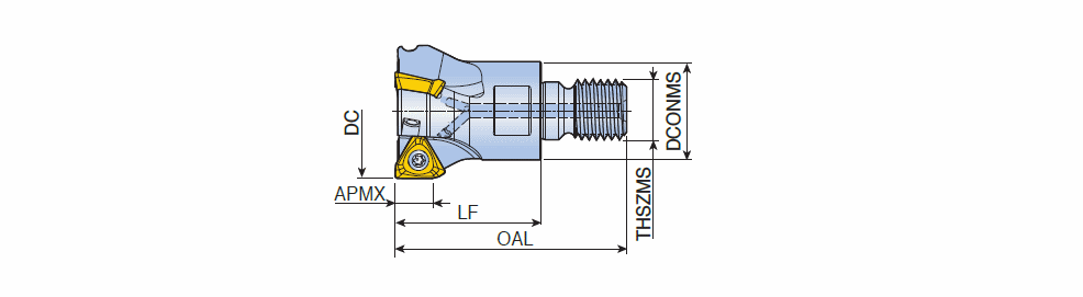 90° Modular end mills with T-FLEXTEC adaptation & high positive three helical cutting edges of 3PK(H)T 10 inserts