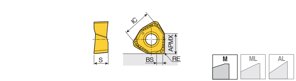 Double-sided ground positive 6 cutting edges inserts for general machining and 90° shoulders