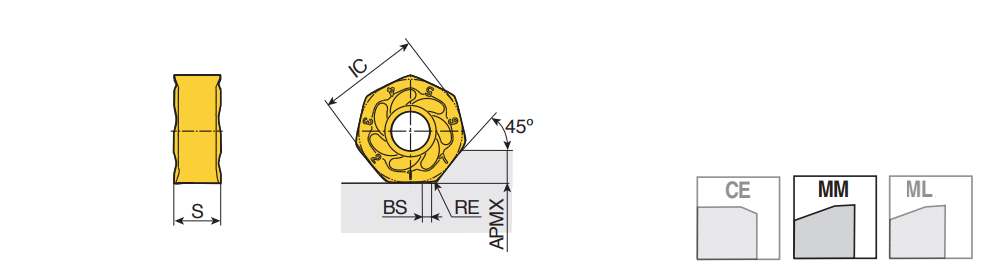 Ground double-sided inserts of economical 14 cutting edges with optimized geometry for cast iron in max. depth of cut 5.0 mm