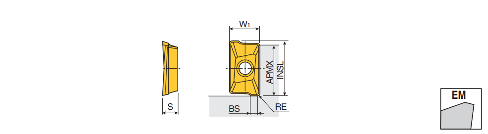 Various corner radii inserts of APKT 09 with two helical cutting edges for general machining in 90° shoulders