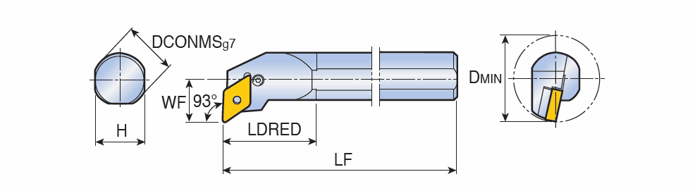 Lever type boring bars with 93° approach angle for negative 55° Rhombic inserts