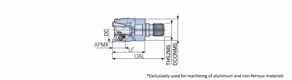 90° Modular end mills with T-FLEXTEC adaptation & high positive 2 helical cutting edges of V bottomed XEVT inserts for high speed aluminum machining