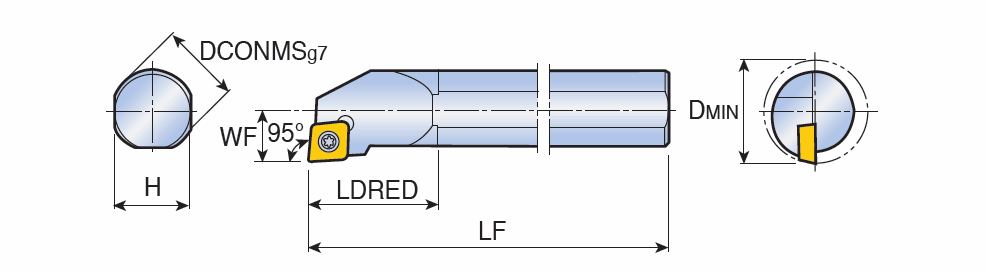 Screw type boring bars for positive 80° Rhombic inserts of 11° clearance angle with 95° approach angle