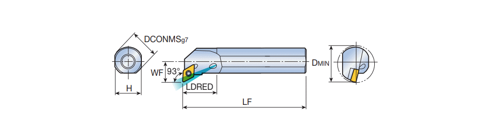 Screw type boring bars for 55° negative Rhombic inserts with coolant and 93° approach angle