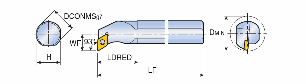 Screw type boring bars for positive 55° Rhombic inserts of 7° clearance angle with 93° approach angle