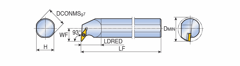 Screw type boring bars for positive 35° Rhombic inserts of 7° clearance angle with 93° approach angle