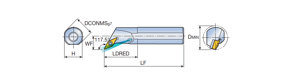 Screw type boring bars for negative 35° Rhombic inserts with coolant and 117.5° approach angle