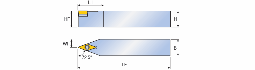 Screw type holders with 72.5° approach angle for positive 35° Rhombic inserts of 7° clearance angle