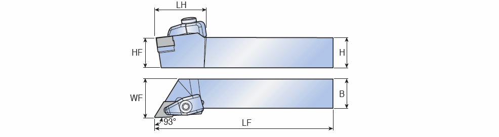 T-holders with 93° approach angle for negative 55° Rhombic Ceramic Dimple inserts