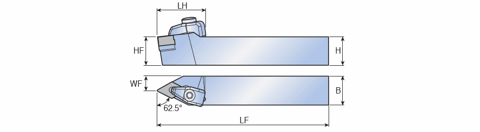 T-holders with 62.5° approach angle for negative 55° Rhombic Ceramic Dimple inserts