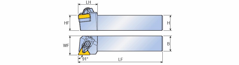 T-holders with 91° approach angle for negative Triangular inserts