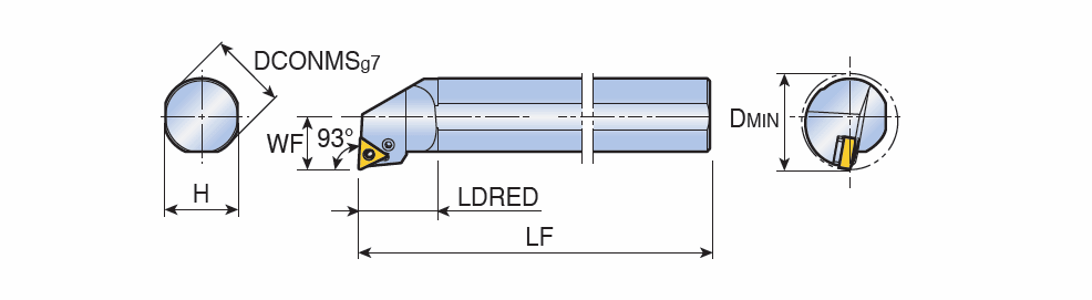 Hook lever RHINOTURN boring bars for TN.. 1304 inserts with 93° approach angle