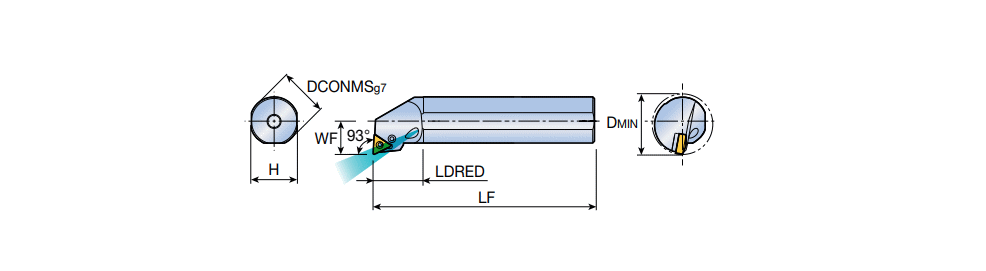 Hook lever RHINOTURN boring bars with coolant & 93° approach angle for TN.. 1304 inserts