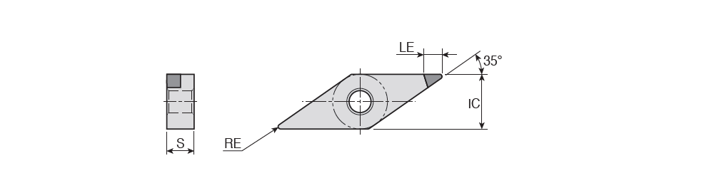 Negative 35° Rhombic inserts with single PCD tip of positive angle for finishing of aluminum and non-ferrous metal