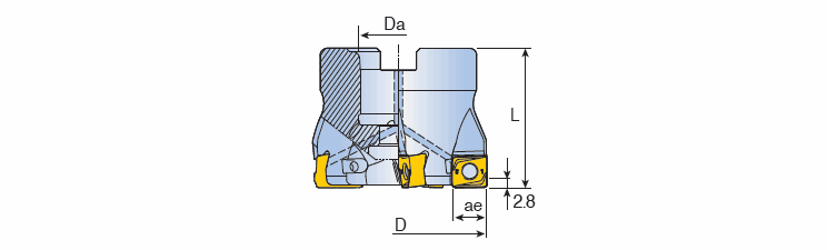 Plunging face mills with four helical cutting edges of PLNG 09 inserts for plunging & facing