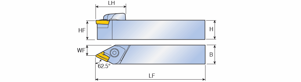 Top clamp holders with 62.5° approach angle for negative 55° Parallelogram inserts
