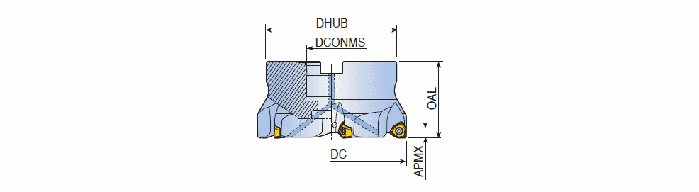 90° Face mills with positive six cutting edges of double- sided 6NGU 06/09 inserts in inch bores