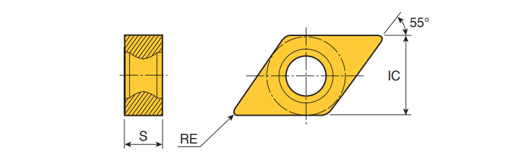Negative 55° Rhombic RHINOTURN inserts for finishing & semi-finishing of steels, stainless steels and cast irons