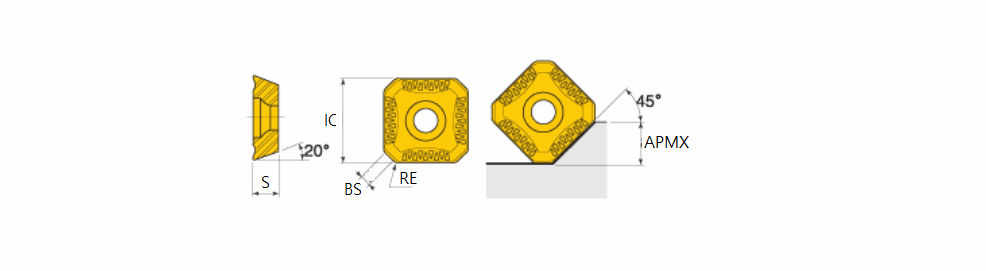 High positive square inserts with four cutting edges for general applications in 45 cutters