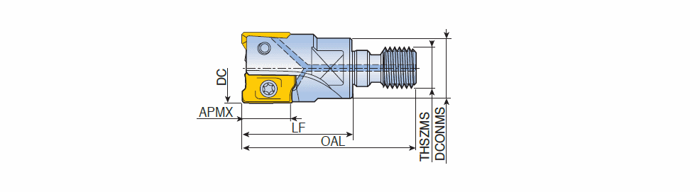 90° Modular end mills with T-FLEXTEC adaptation & high positive two helical cutting edges of AP.. 17 inserts