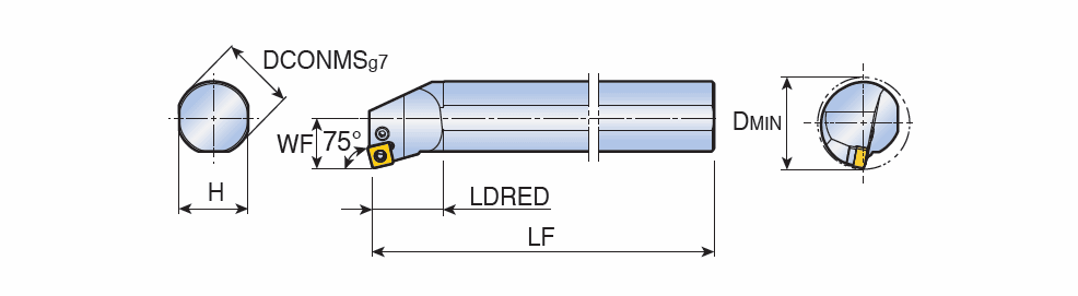 Hook lever RHINOTURN boring bars for SN.. 0904 inserts with 75° approach angle