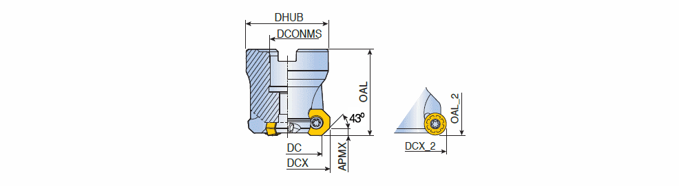 43° Face mills with high positive octagon inserts & simple screw clamping for general milling