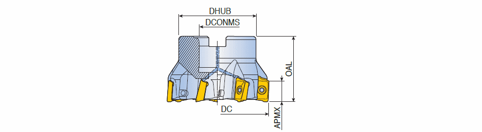 90° Face mills with high positive two helical cutting edges inserts of AP.. 17