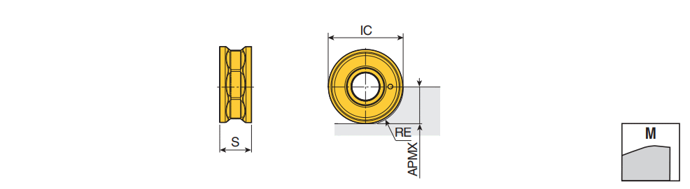 Double-sided economical round inserts for general milling applications with max. 8 index per side (total 16 corners) when the depth of cut is limited.