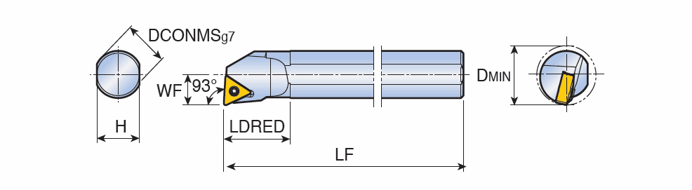 Screw type RHINOTURN boring bars for TN.. 1304 inserts with 93° approach angle