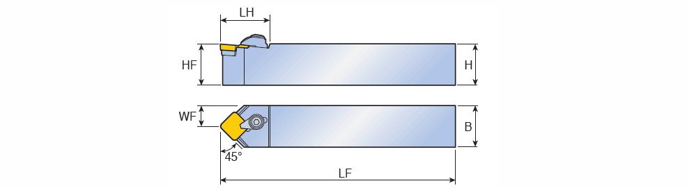Top clamp holders with 45° approach angle for positive Square inserts of 11° clearance angle