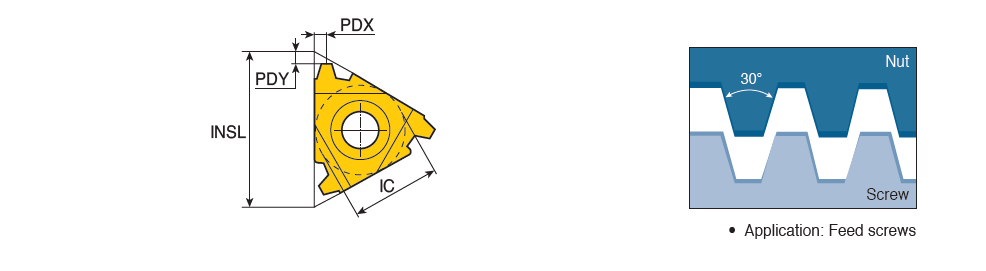 External Trapeze shaped DIN 103 threading inserts for feed screws