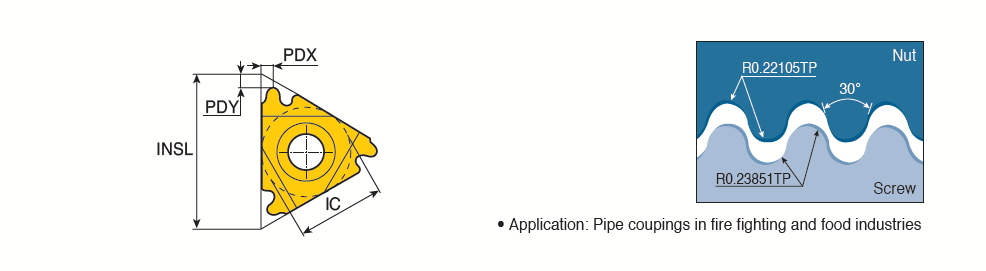 Internal DIN 405 round threading inserts for fire fighting and food industry pipe couplings