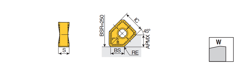 Ground wiper inserts with 2 right-handed & 2 left-handed cutting edges for 45° face mills