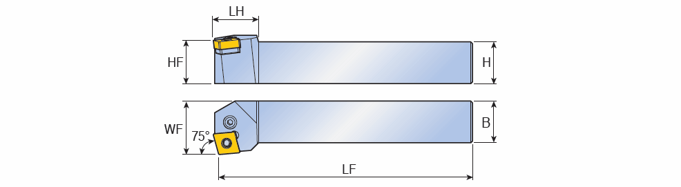 Lever type holders facing with 75° approach angle for negative 80° rhombic inserts