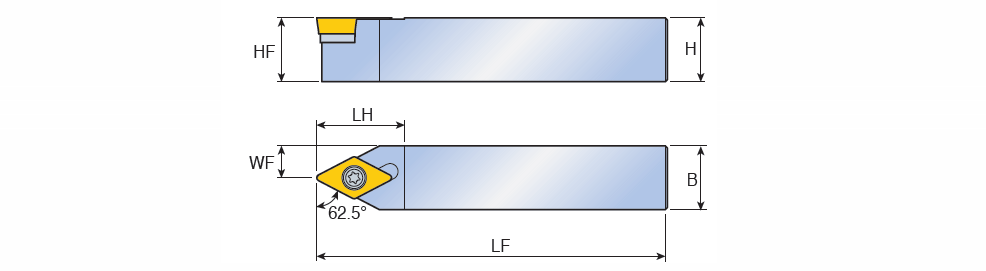 Screw type holders with 62.5° approach angle on positive 55° Rhombic inserts of 7° clearance angle