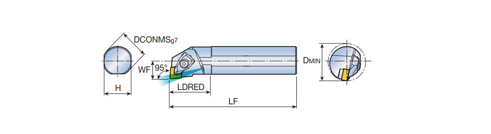 T-holder boring bars for 80° negative Rhombic inserts with coolant and 95° approach angle