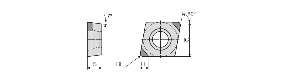 Positive 80° Rhombic inserts with single PCD tip of positive rake angle for finishing of non-ferrous metal & aluminum