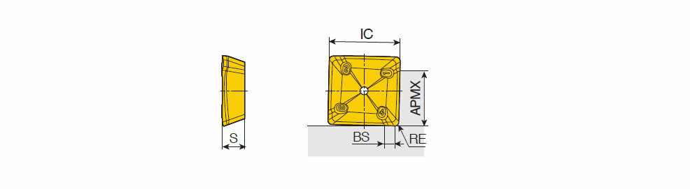 Thicker positive square inserts of 4 cutting edges with 90° face mills for heavy industry