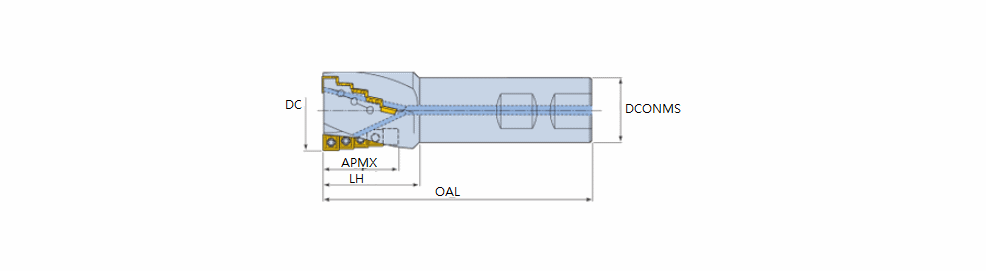 Extended flute end mills with SDMT 05 inserts of 4 cutting edges