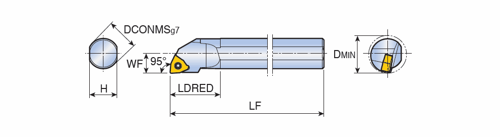 Screw type RHINOTURN boring bars for WNMX 0604 inserts with 95° approach angle