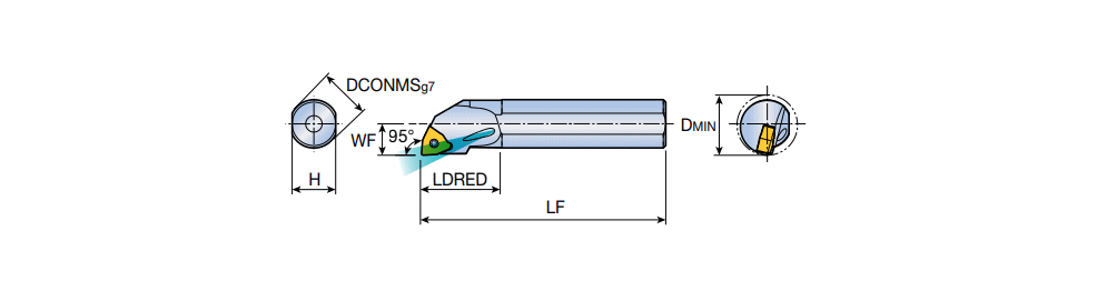 Screw type RHINOTURN boring bars with 95° approach angle & coolant for WNMX 0604 inserts