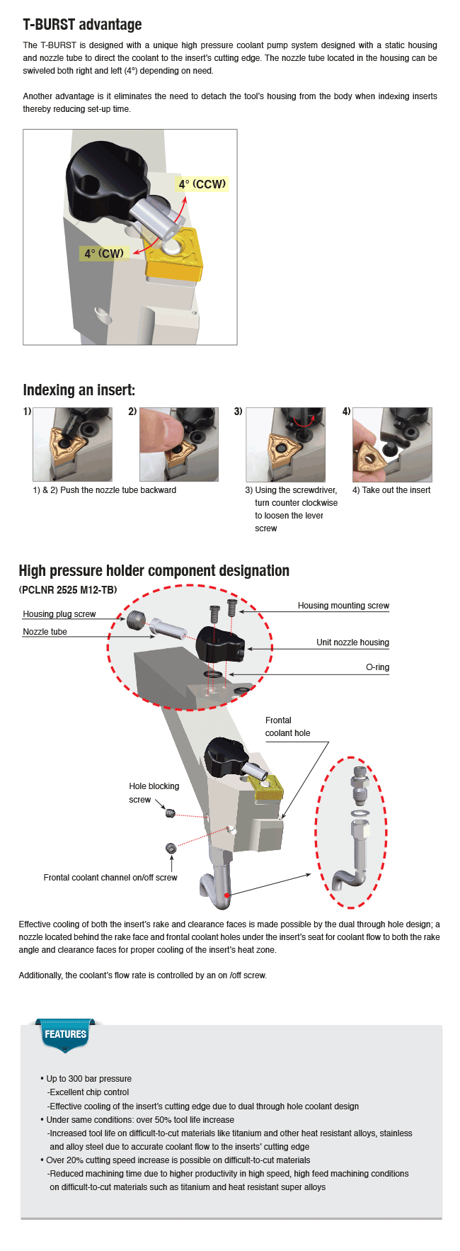 : High pressure coolant lever type holders with 95° approach angle & negative 80° trigon inserts