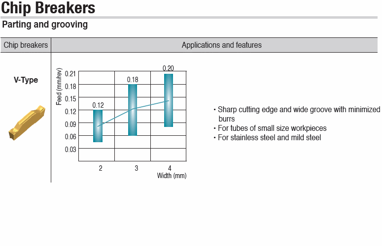 : Double-ended inserts with V-Type chip breaker for parting and grooving of stainless steel & mild steel with tubes, small & thin-walled parts