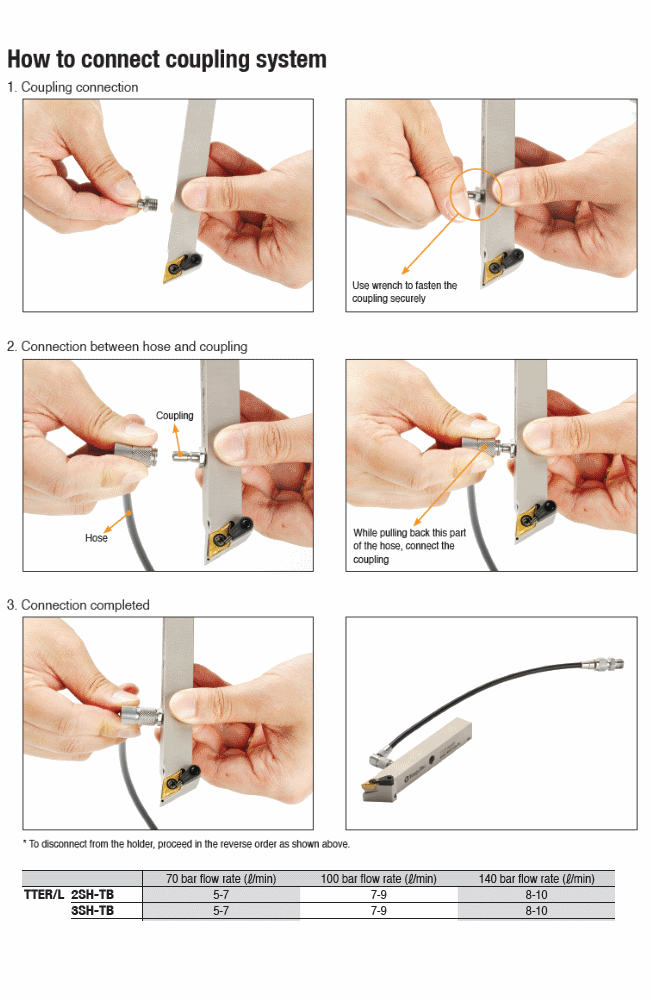 Coolant pressure: recommended 70 bar, max. up to 140 bar